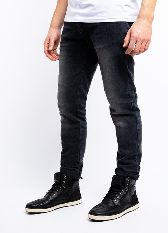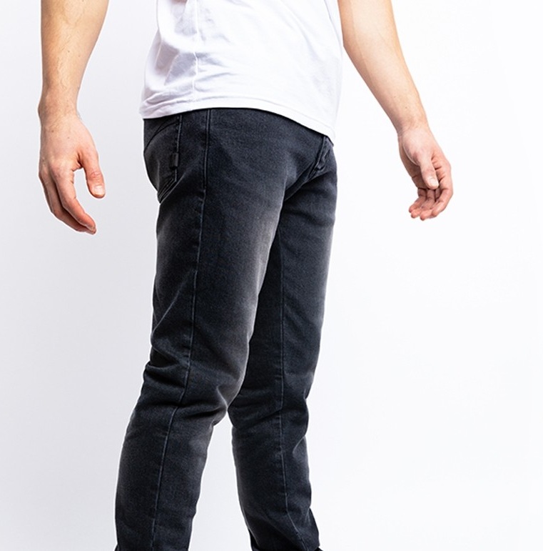Taylor Monolayer ma standardowy krój, klasyczny styl z pięcioma kieszeniami i wystarczająco rozciągliwy materiał, aby zapewnić doskonały komfort noszenia cały dzień oraz podczas jazdy motocyklem.